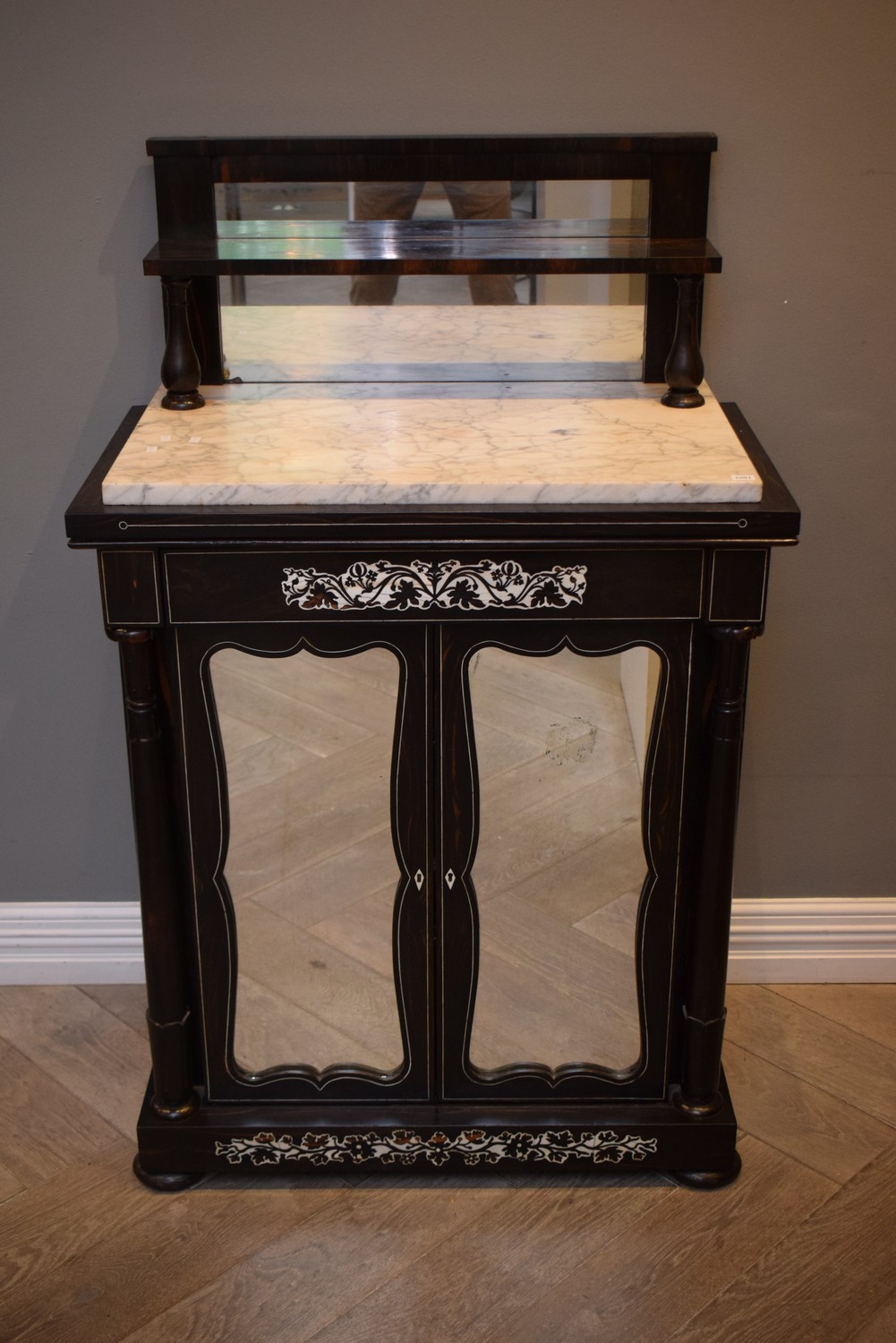 AN ANTIQUE COROMANDEL WOOD CABINET WITH DECORATIVE INLAY (128H x 79W x 49D CM) (PLEASE NOTE THIS HEAVY ITEM MUST BE REMOVED BY CARRIERS AT THE CUSTOMER'S EXPENSE. LEONARD JOEL STAFF CANNOT ASSIST CARRYING THIS ITEM) (X-LARGE ITEM)