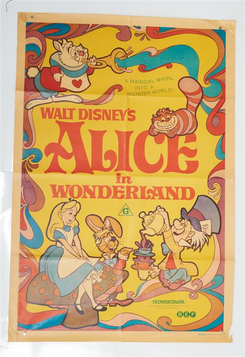 TWO WALT DISNEY AUSTRALIAN RELEASE COLOUR POSTERS - ALICE IN WONDERLAND AND SLEEPING BEAUTY, 25.5 X 20 CM, LEONARD JOEL LOCAL DELIVERY SIZE: SMALL
