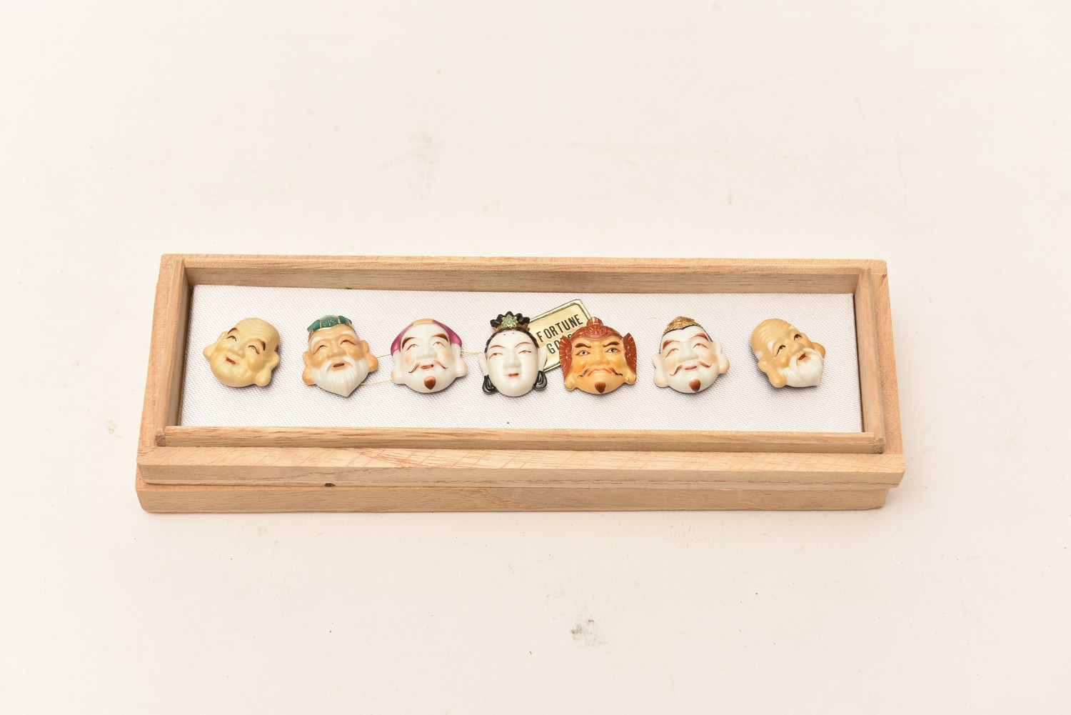 A SET OF SEVEN PORCELAIN JAPANESE FORTUNE GOD BUTTONS - TOSHIKAME, TOKYO, LEONARD JOEL LOCAL DELIVERY SIZE: SMALL (19 CM W)