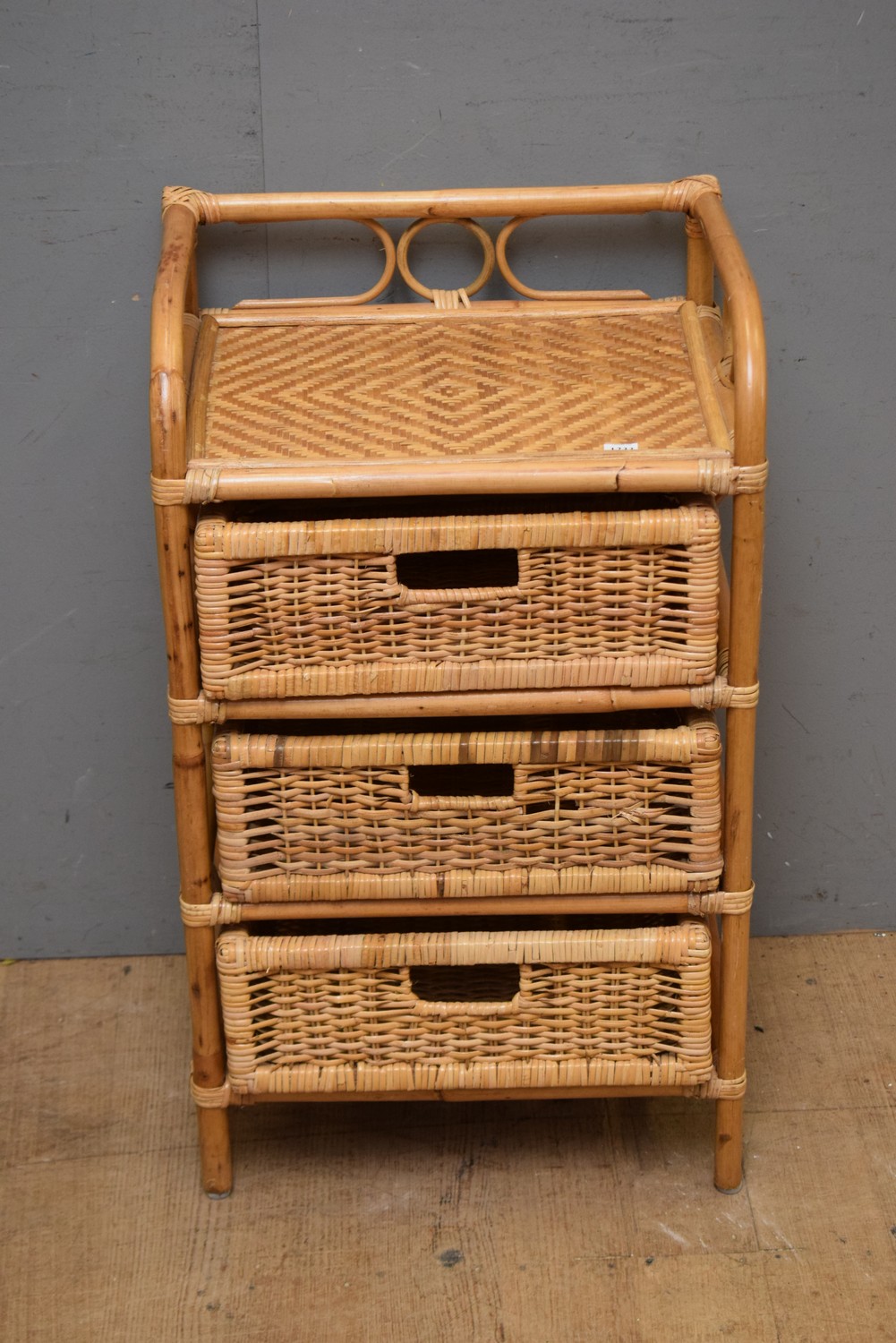 A CANE THREE BEDSIDE TABLE (77H x 45W x 35D CM) (LEONARD JOEL DELIVERY SIZE: MEDIUM)