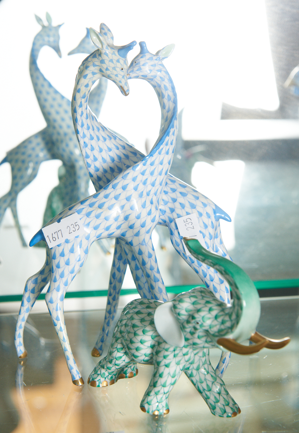 HEREND ELEPHANT & GIRAFFE FIGURAL GROUP, 19CM HIGH (REPAIRS), LEONARD JOEL LOCAL DELIVERY SIZE: SMALL