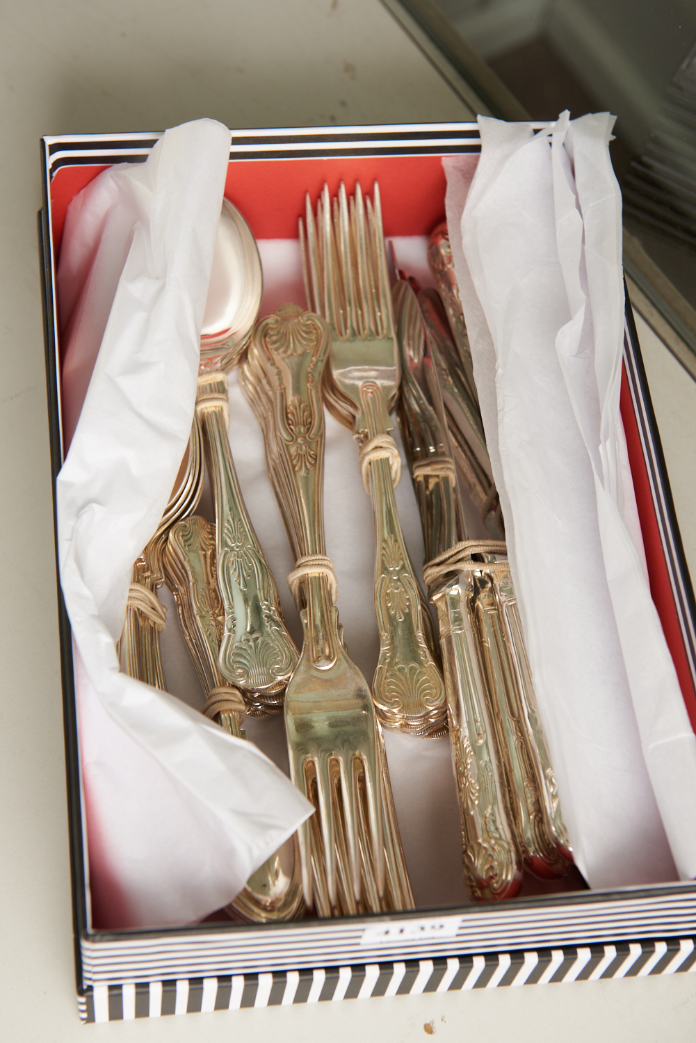A STANLEY AND ROGERS KINGS PATTERN EPNS FLATWARE SERVICE FOR SIX, LEONARD JOEL LOCAL DELIVERY SIZE: SMALL