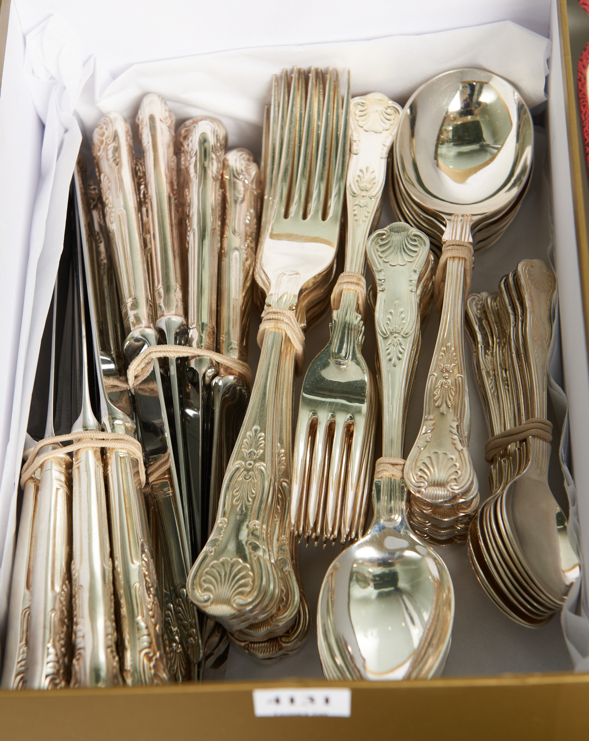 A STANLEY AND ROGERS KINGS PATTERN EPNS FLATWARE SERVICE FOR EIGHT, LEONARD JOEL LOCAL DELIVERY SIZE: SMALL