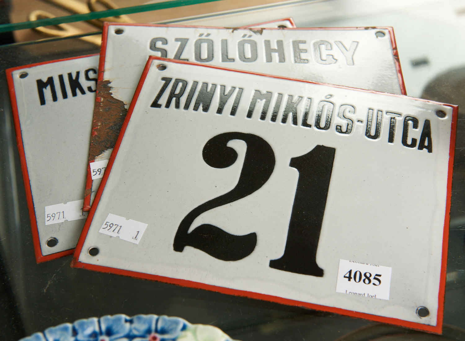 A GROUP OF THREE 1920S HUNGARIAN ENAMEL STREET SIGNS, LEONARD JOEL LOCAL DELIVERY SIZE: SMALL