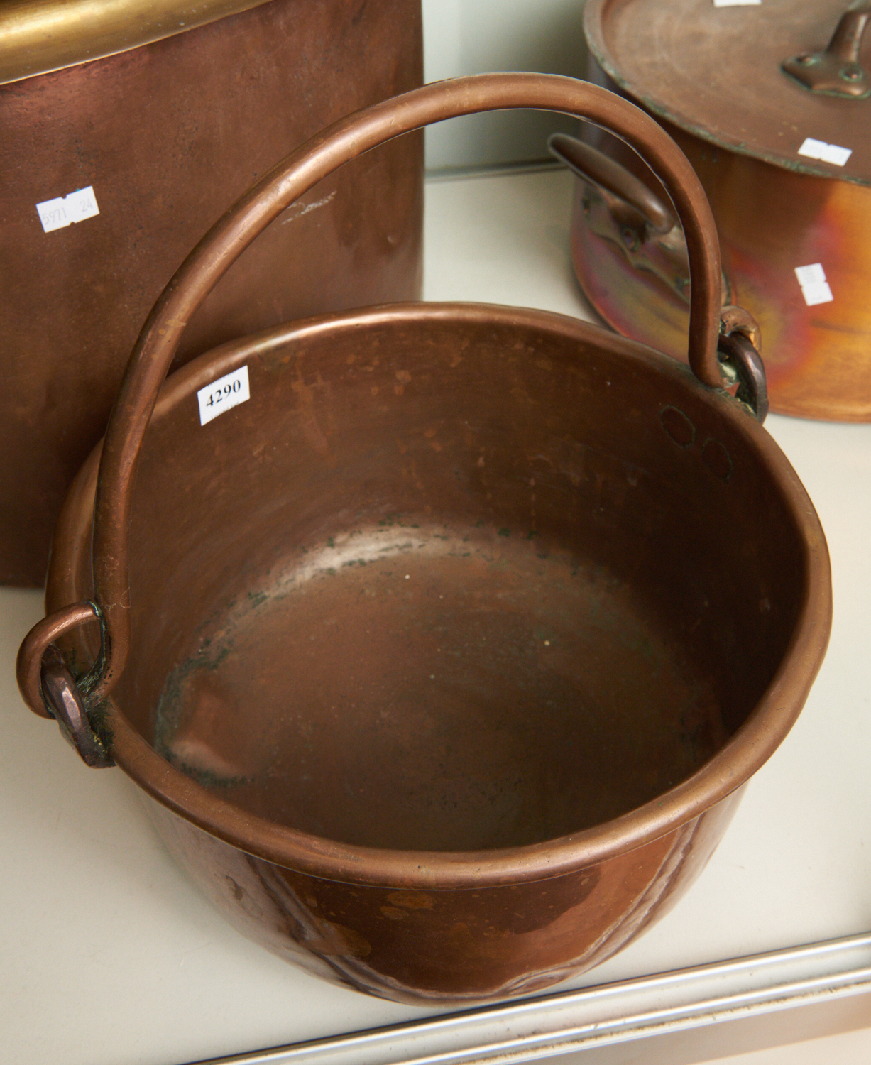 A 19TH CENTURY FRENCH COPPER SWING HANDLED COPPER JAM PAN, LEONARD JOEL LOCAL DELIVERY SIZE: SMALL