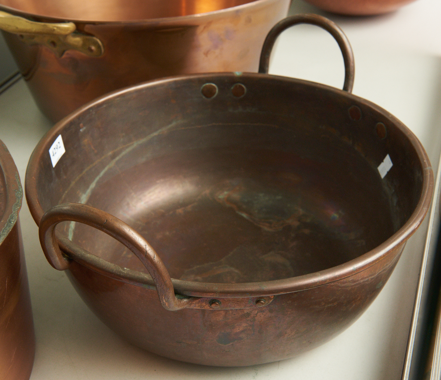 A FRENCH COPPER TWO HANDLED HALF ROUND MIXING BOWL, LEONARD JOEL LOCAL DELIVERY SIZE: SMALL