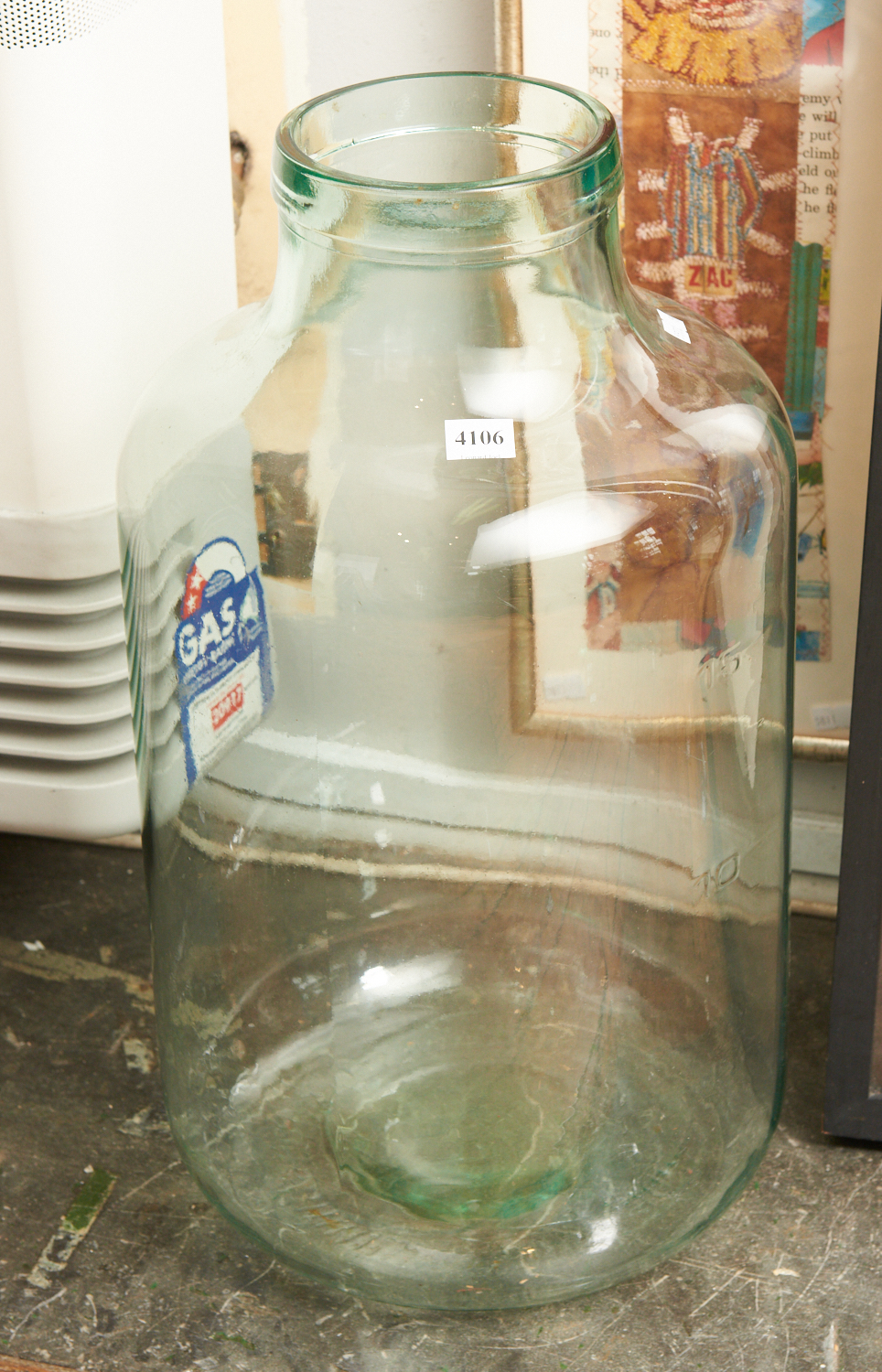 A LARGE 1950S 20 LITRE GLASS MEASURING BOTTLE, LEONARD JOEL LOCAL DELIVERY SIZE: SMALL