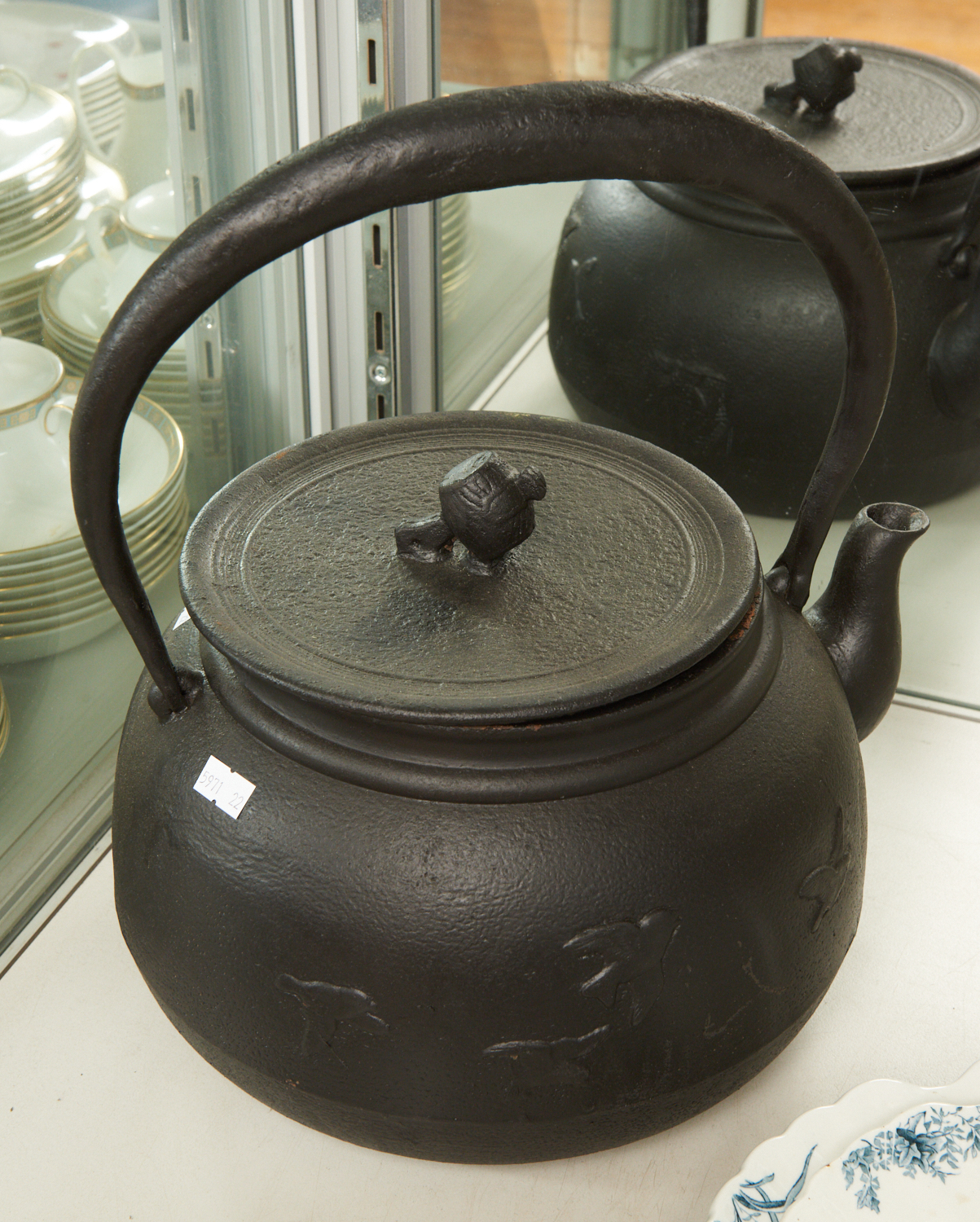 A JAPANESE CAST IRON TETSUBIN TEAPOT WITH APPLIED METAL BIRDS, LEONARD JOEL LOCAL DELIVERY SIZE: SMALL