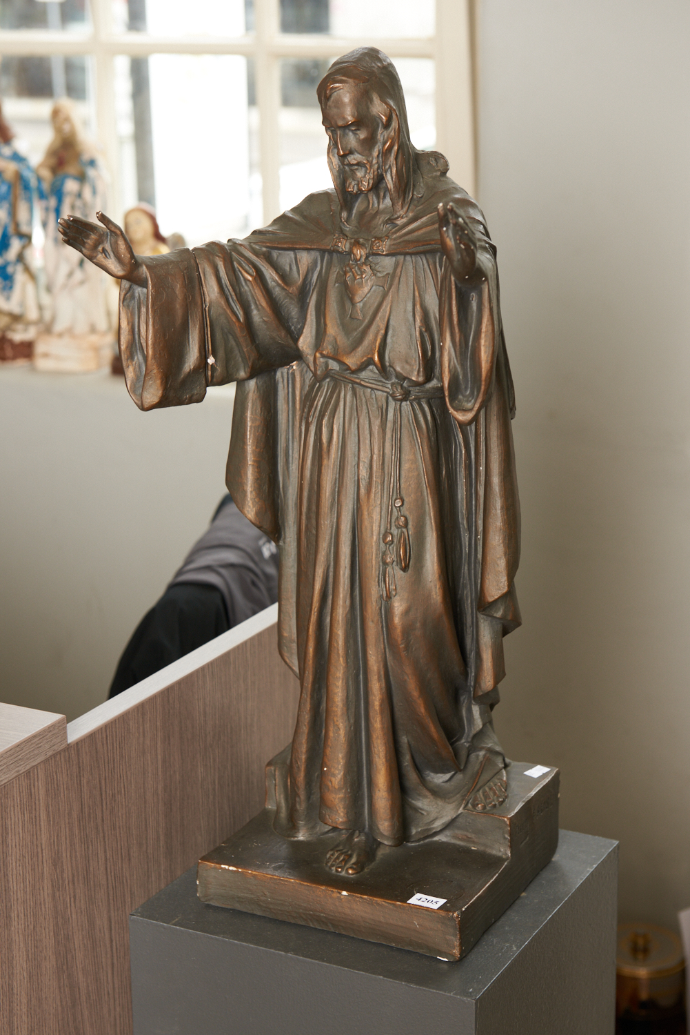 A19TH CENTURY FRENCH BRONZED PLASTER FIGURE OF JESUS WITH REMOVABLE HANDS SIGNED AND STAMPED AUG FALISE, 66 CM HIGH, LEONARD JOEL LOCAL DELIVERY SIZE: SMALL