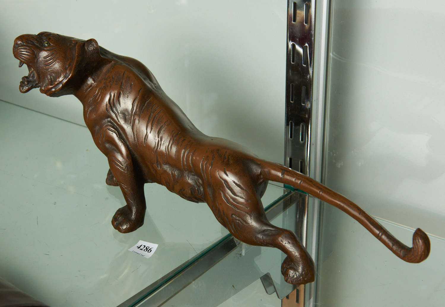 A CHINESE BRONZE TIGER FIGURE WITH GLASS EYES, W.43CM, LEONARD JOEL LOCAL DELIVERY SIZE: SMALL