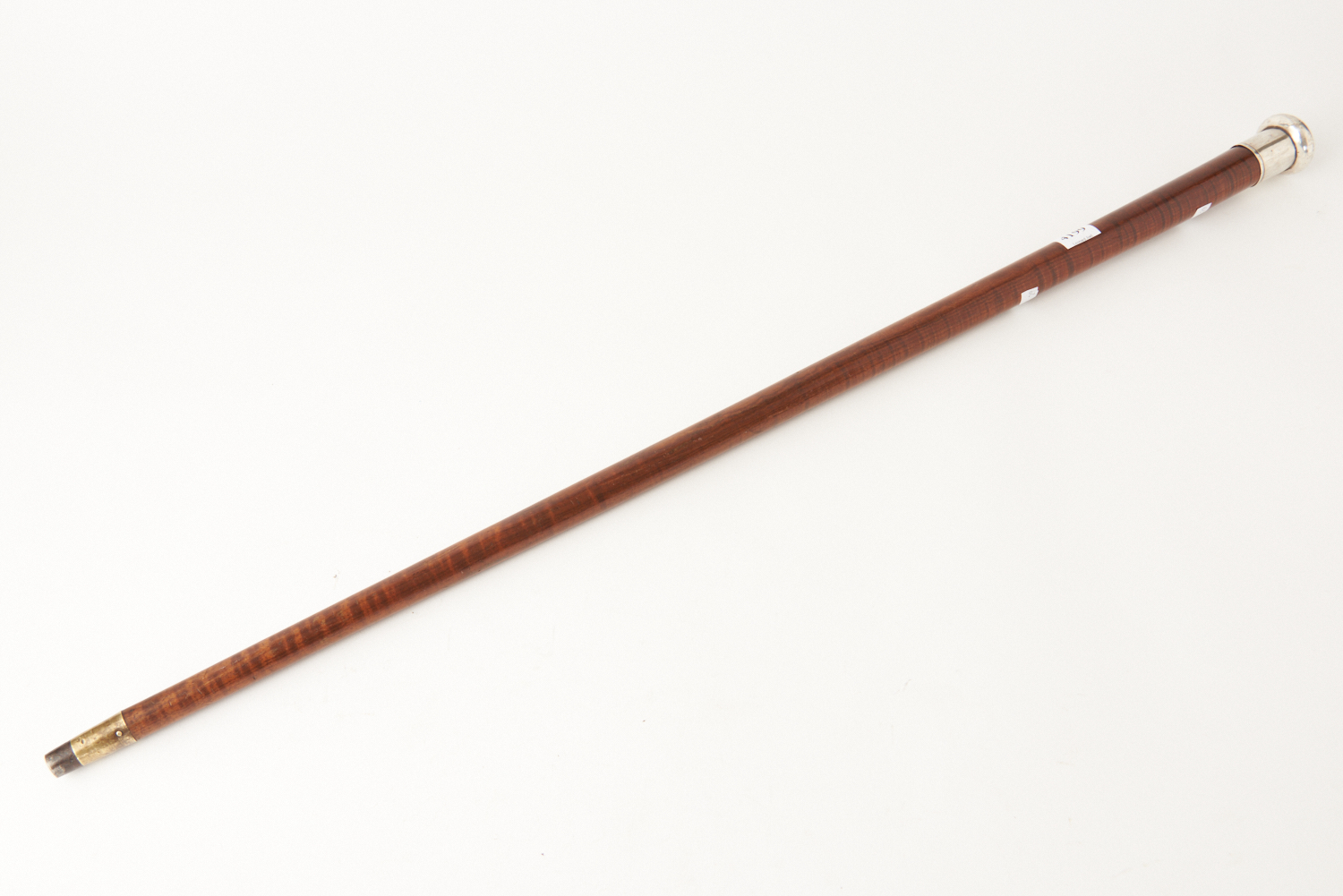 A WWI AUSTRALIAN FIDDLE BACK BLACKWOOD AND SILVER TIPPED WALKING STICK ENGRAVED NWS 22-5-18, L.81CM, LEONARD JOEL LOCAL DELIVERY SIZE: SMALL