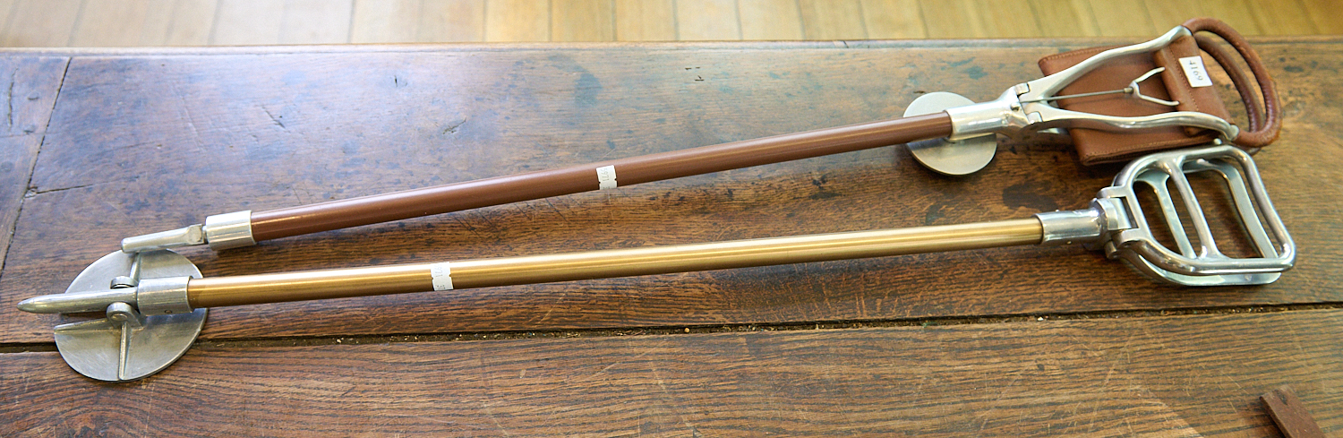 TWO HUNTING STICKS - ONE STAMPED THE FEATHERWATE H.86CM, LEONARD JOEL LOCAL DELIVERY SIZE: SMALL