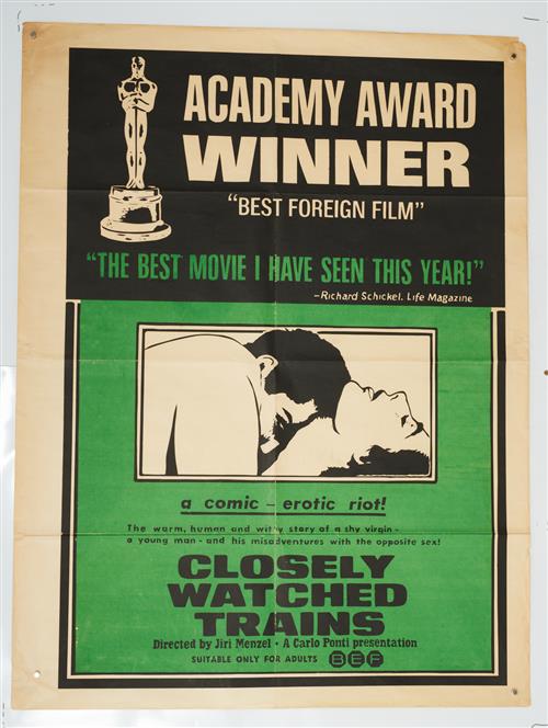 CLOSELY WATCHED TRAINS (1966), LOVE IN THE AFTERNOON (1972), THE UNFAITHFUL WIFE (1969) - THREE AUSTRALIAN RELEASE COLOUR FILM POSTERS, 101.5 X 68 CM, LEONARD JOEL LOCAL DELIVERY SIZE: SMALL