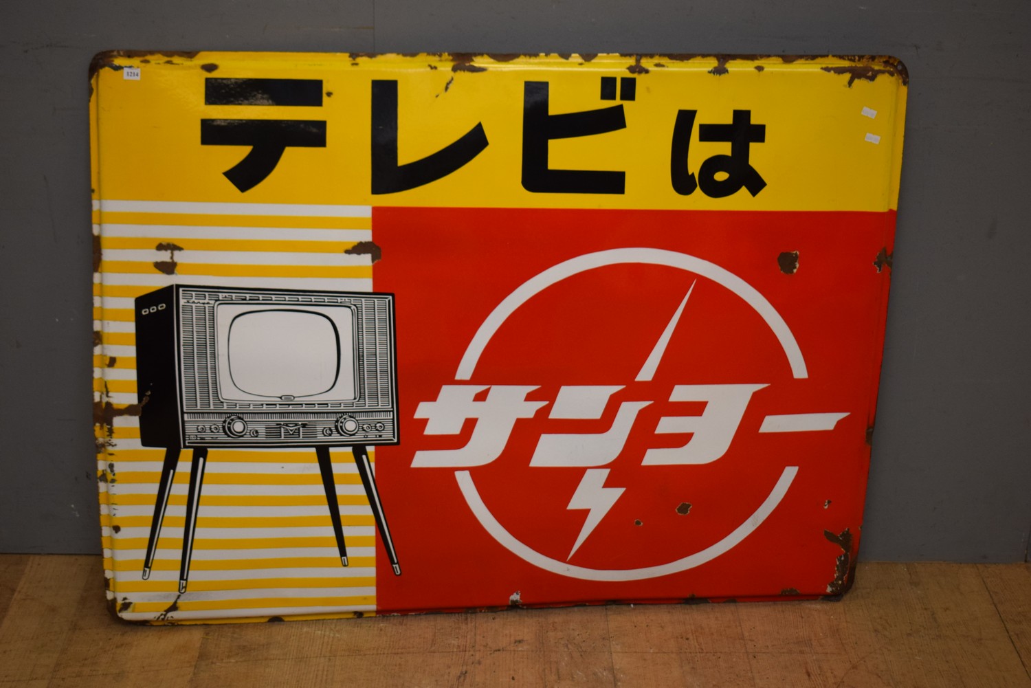 A LARGE 1940S JAPANESE SAMSUNG TELEVISION ADVERTISING ENAMEL SIGN (91H x 122W CM) (LEONARD JOEL DELIVERY SIZE: MEDIUM)