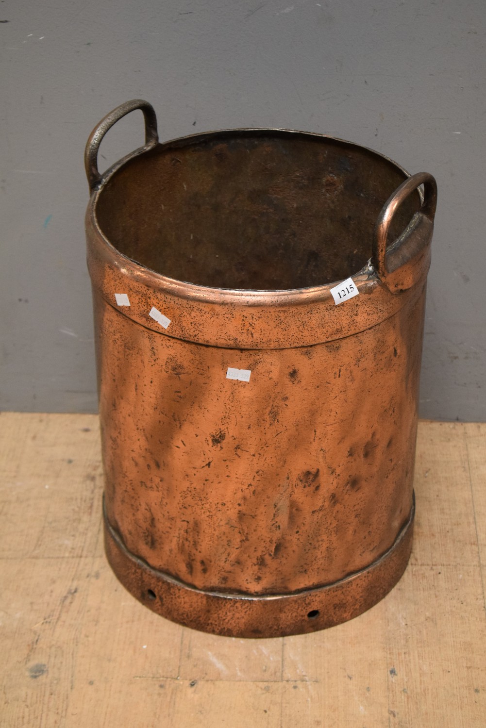 A LARGE FRENCH COPPER 2 HANDLED BUCKET (49H x 35D CM) (LEONARD JOEL DELIVERY SIZE: MEDIUM)