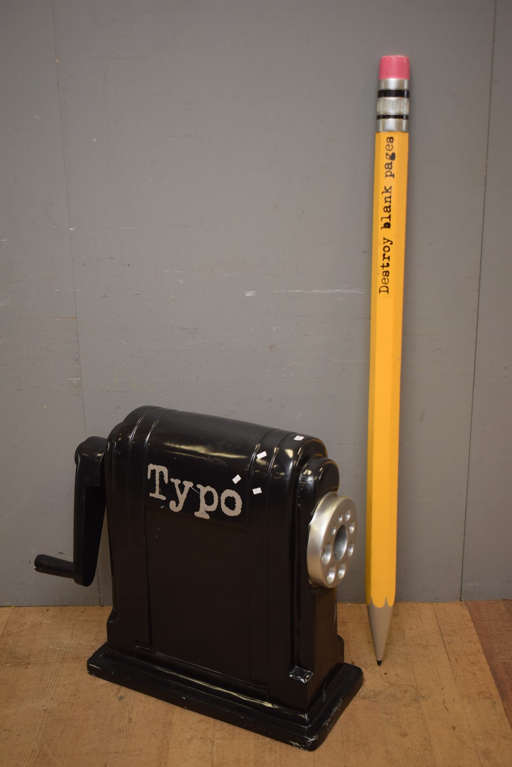 A POINT OF SALE EX-SHOP DISPLAY FIBERGLASS TYPO PENCIL SHARPENER AND PENCIL (PENCIL 161H CM) (LEONARD JOEL DELIVERY SIZE: LARGE)