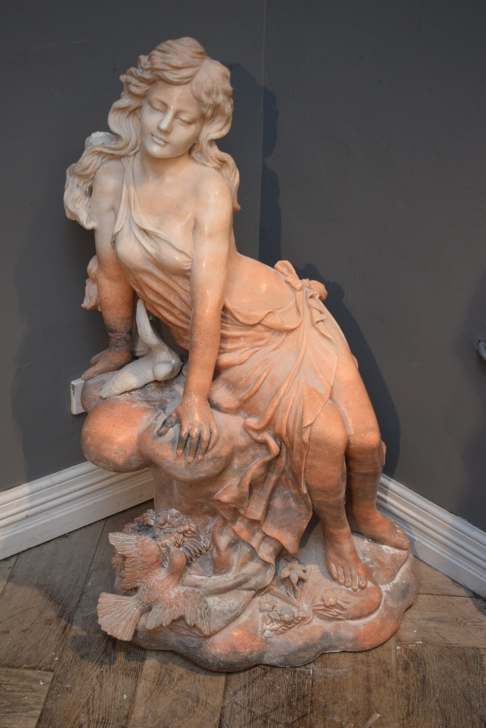 A SUBSTANTIAL MARBLE SCULTURE OF A WOMAN (A/F) (H110 X W70 X D50 CM) (PLEASE NOTE THIS HEAVY ITEM MUST BE REMOVED BY CARRIERS AT THE CUSTOMER'S EXPENSE. LEONARD JOEL STAFF CANNOT ASSIST CARRYING THIS ITEM)