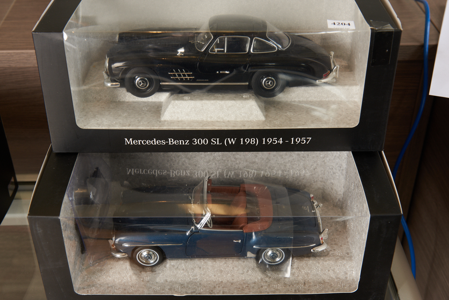 TWO 1:18 DIECAST MODELS, INCLUDING A MERCEDES-BENZ 300SL GULLWING AND A MERCEDES-BENZ 190 SL ROADSTER, BOXED, LEONARD JOEL LOCAL DELIVERY SIZE: SMALL