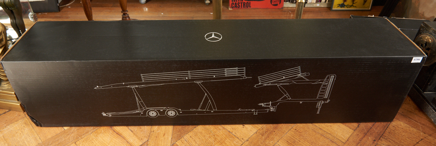 A LARGE 1:18 DETAILED SCALE MODEL MERCEDES-BENZ CAR TRANSPORTER TRAILER, BOXED, LEONARD JOEL LOCAL DELIVERY SIZE: SMALL