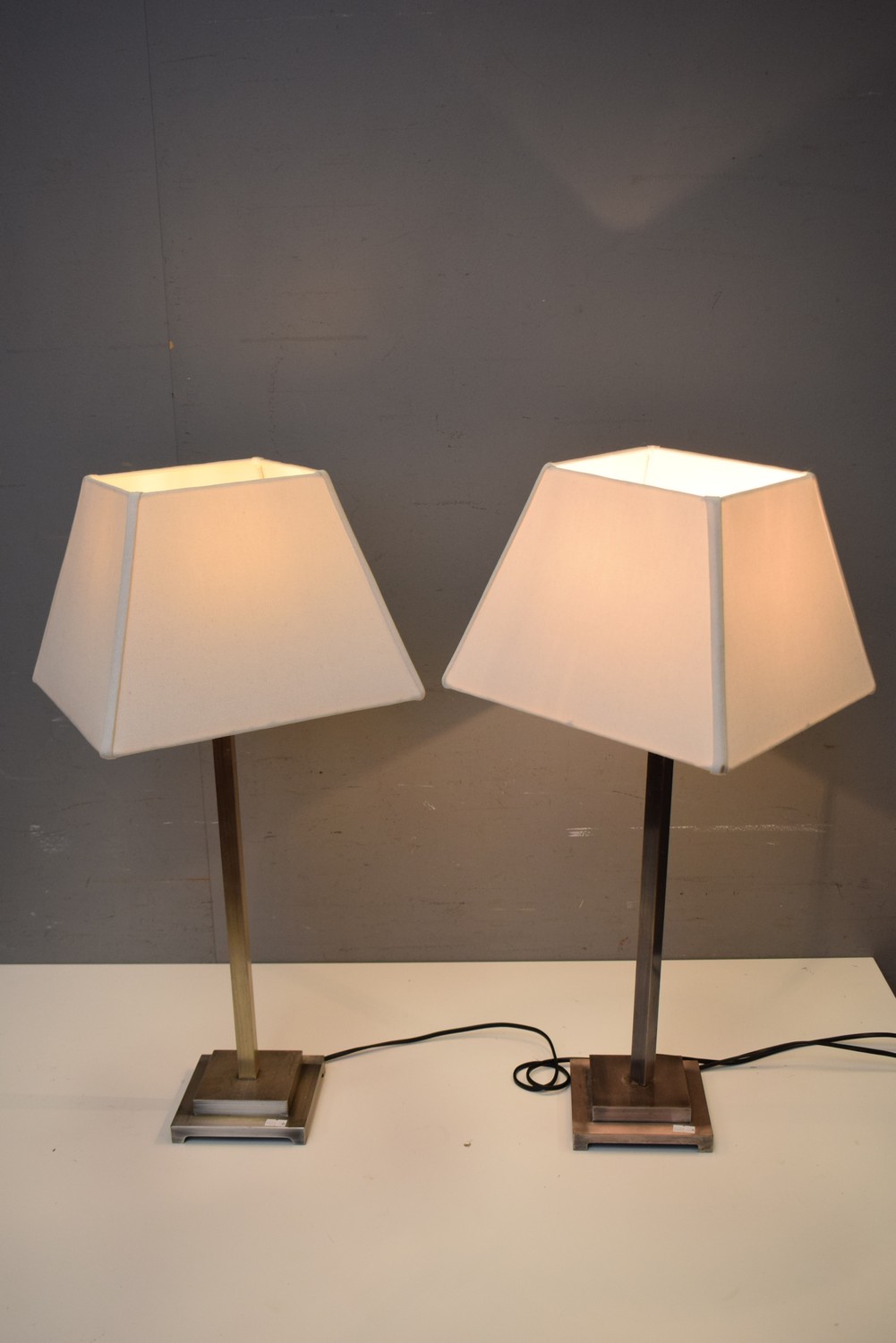 A PAIR OF MODERN LAMPS WITH SHADES (A/F) (70H CM) (LEONARD JOEL DELIVERY SIZE:SMALL)