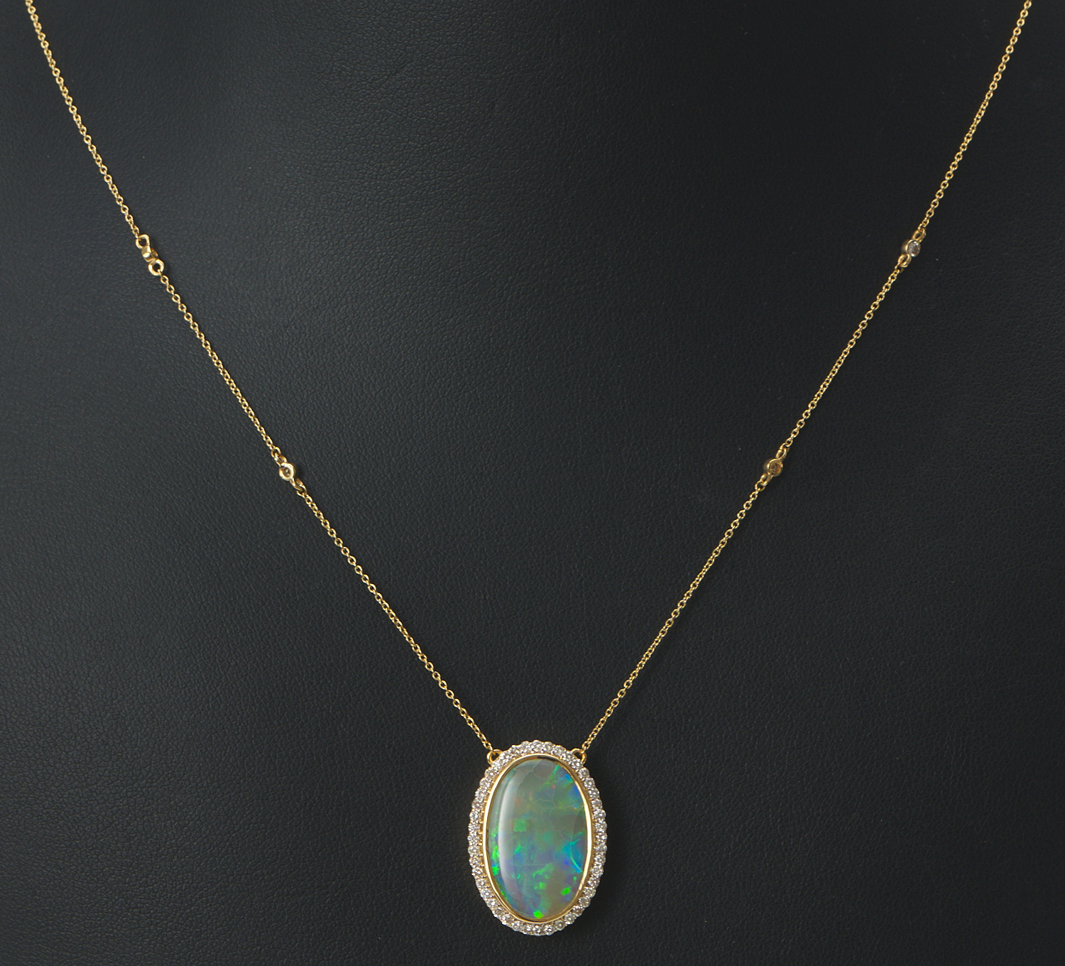 The opal presents a nice play of colour with red, green and blue flashes; some visible crazing on the surface