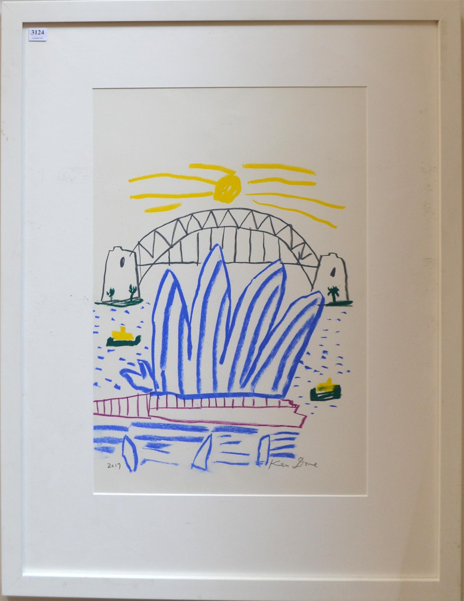 KEN DONE, SYDNEY HARBOUR, PASTEL ON PAPER, 56.5 X 38CM, LEONARD JOEL DELIVERY SIZE: SMALL
