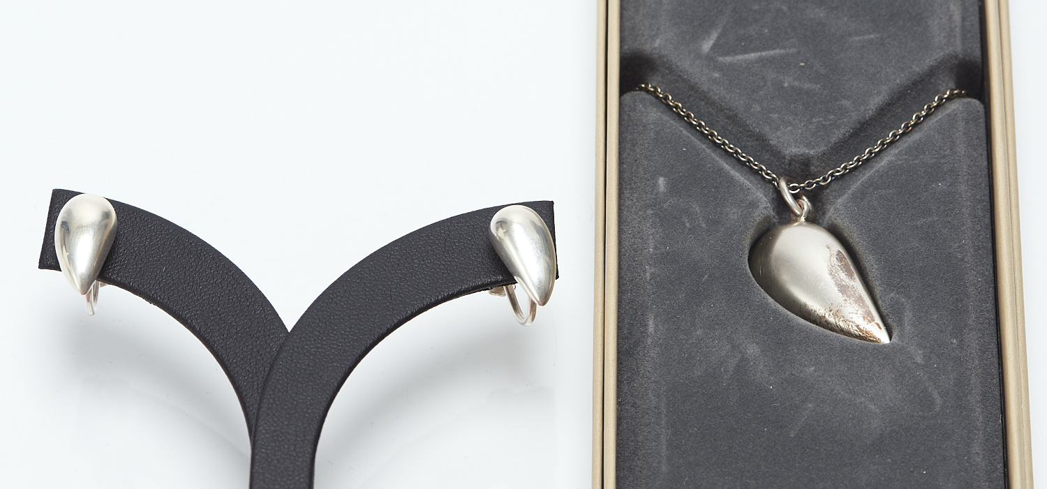 AN "ARTIST HEART" LIMITED COLLECTION JEWELLERY SUITE BY GEORG JENSEN IN STERLING SILVER, DESIGN BY JACQUELINE RABUN, CIRCA 2007, COMPRISING A PAIR OF SCREW BACK EARRINGS AND A PENDANT WITH CHAIN, HALLMARKED