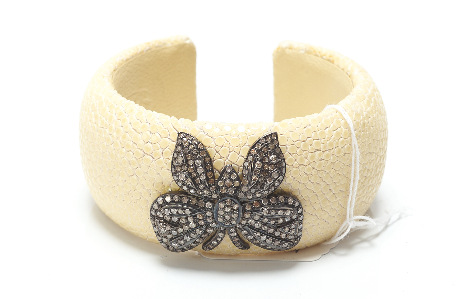 A DIAMOND AND STINGRAY LEATHER CUFF BY AKNAS, INNER DIAMETER 5.5CM