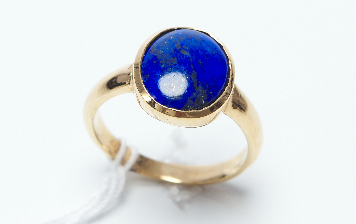 A LAPIS-LAZULI SIGNET RING IN 9CT GOLD, SIZE O, 3.7GMS