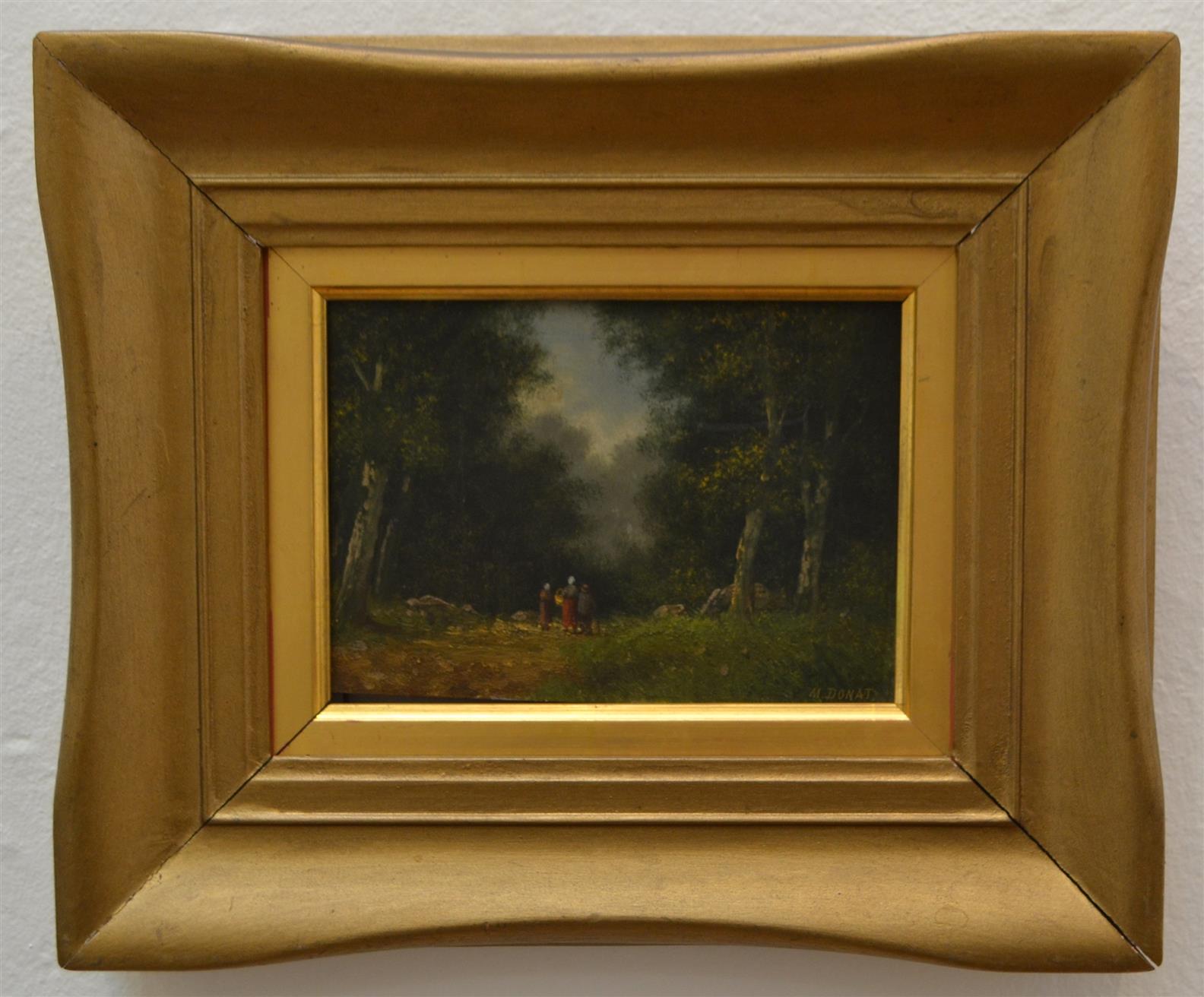 M DONAT, WOODLAND SCENE, OIL ON BOARD, 12 X 17CM, FRAME: 26 X 32CM, CONDITION: VERY GOOD, PANEL LOOSE IN FRAME, LEONARD JOEL DELIVERY SIZE: SMALL