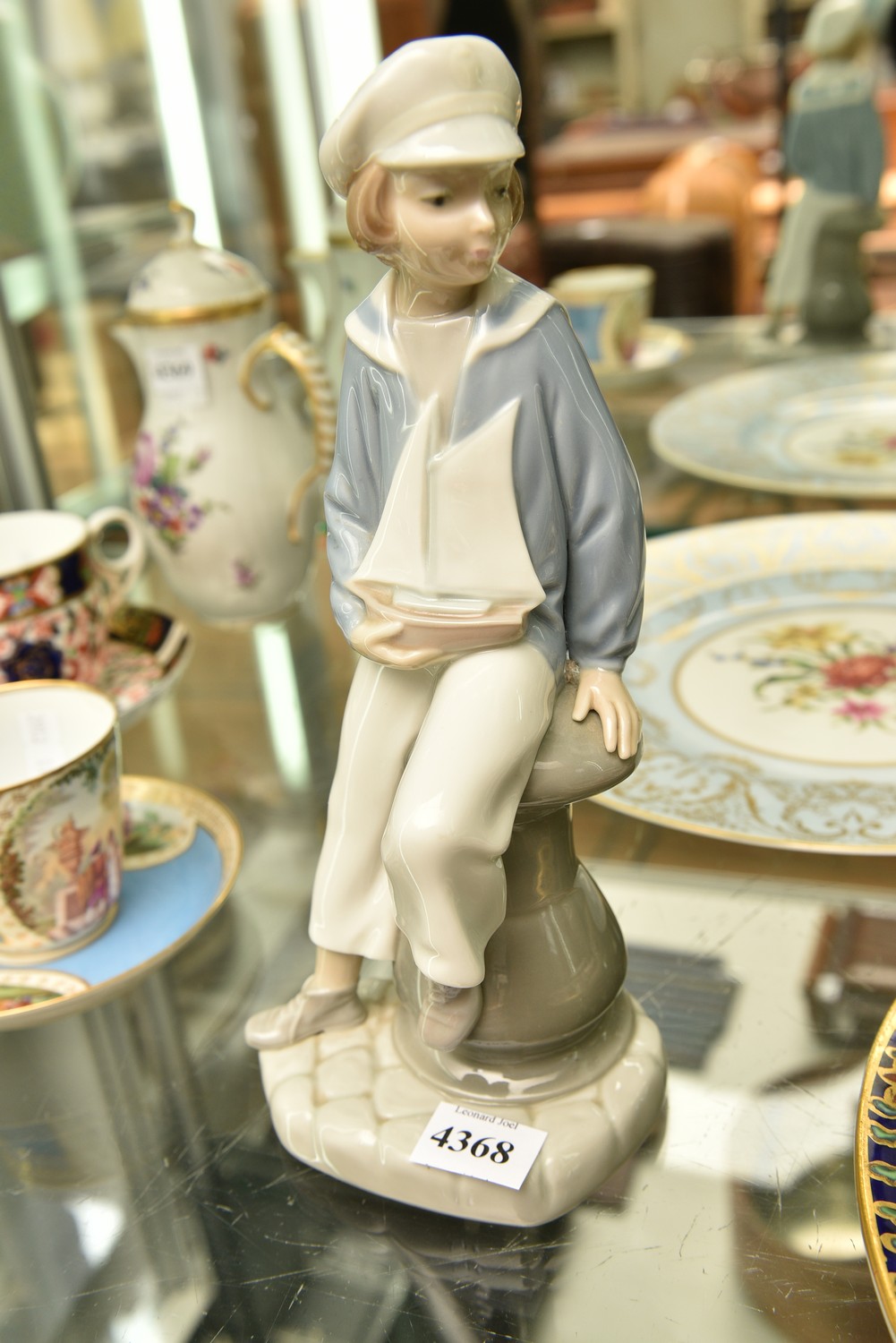 A LLADRO FIGURE OF A BOY WITH A TOY SAILING YACHT, LEONARD JOEL LOCAL DELIVERY SIZE: SMALL (24 CM H)