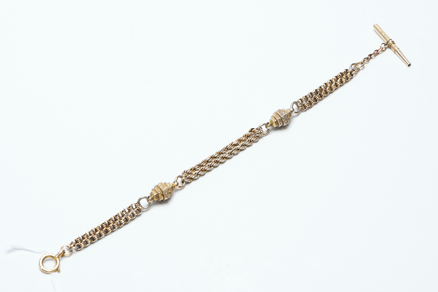 AN ALBERTINA CHAIN IN SILVER GILT WITH A WATCH KEY, LENGTH 22CMS