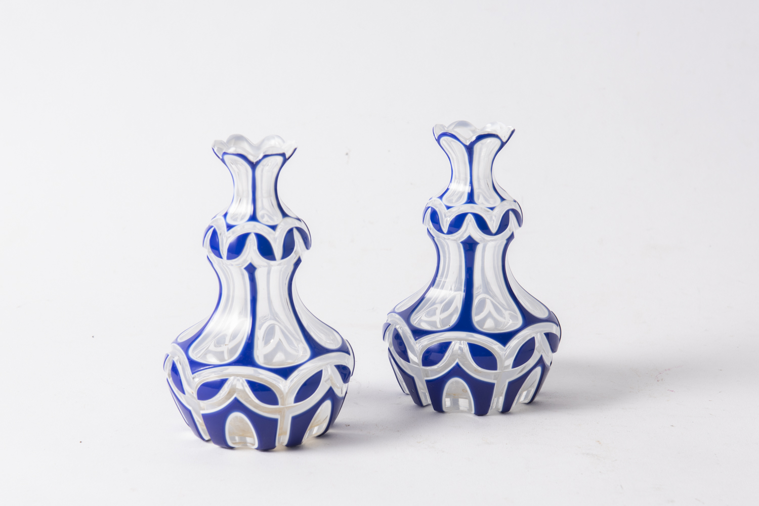 A PAIR OF BOHEMIAN CASED GLASS BOTTLES, 14.5 CM H, LEONARD JOEL LOCAL DELIVERY SIZE: SMALL