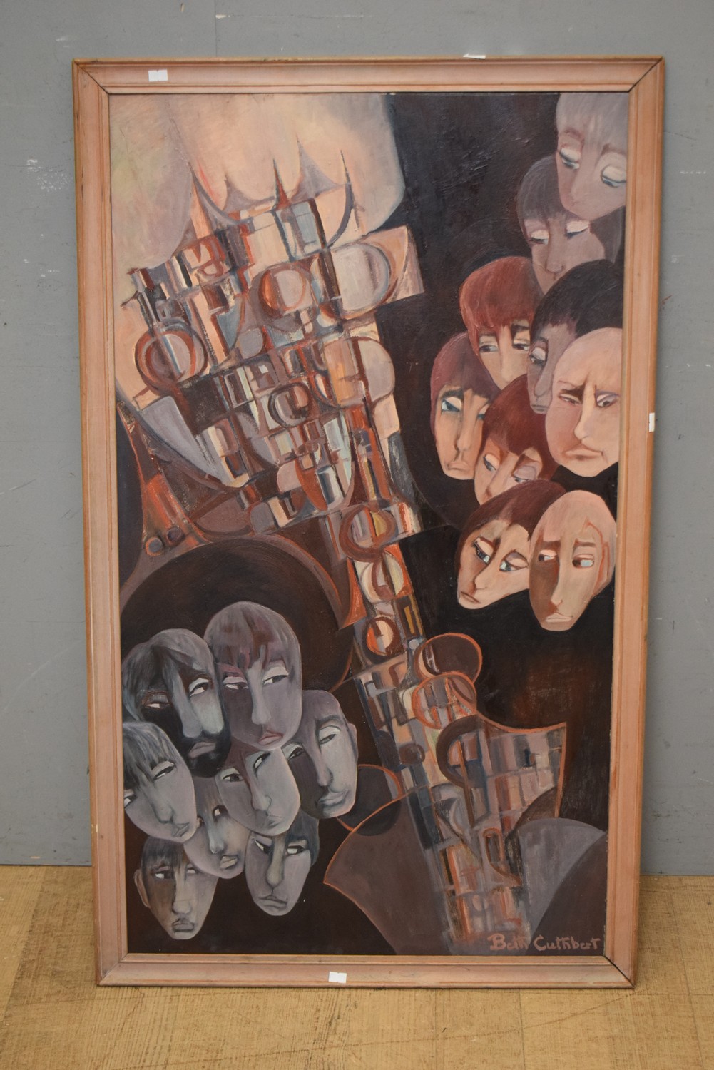 A RETRO 1960S OIL ON BOARD FRAMED PAINTING - BETH CUTHBERT (A/F) (115H x 68W CM) (LEONARD JOEL DELIVERY SIZE: MEDIUM)