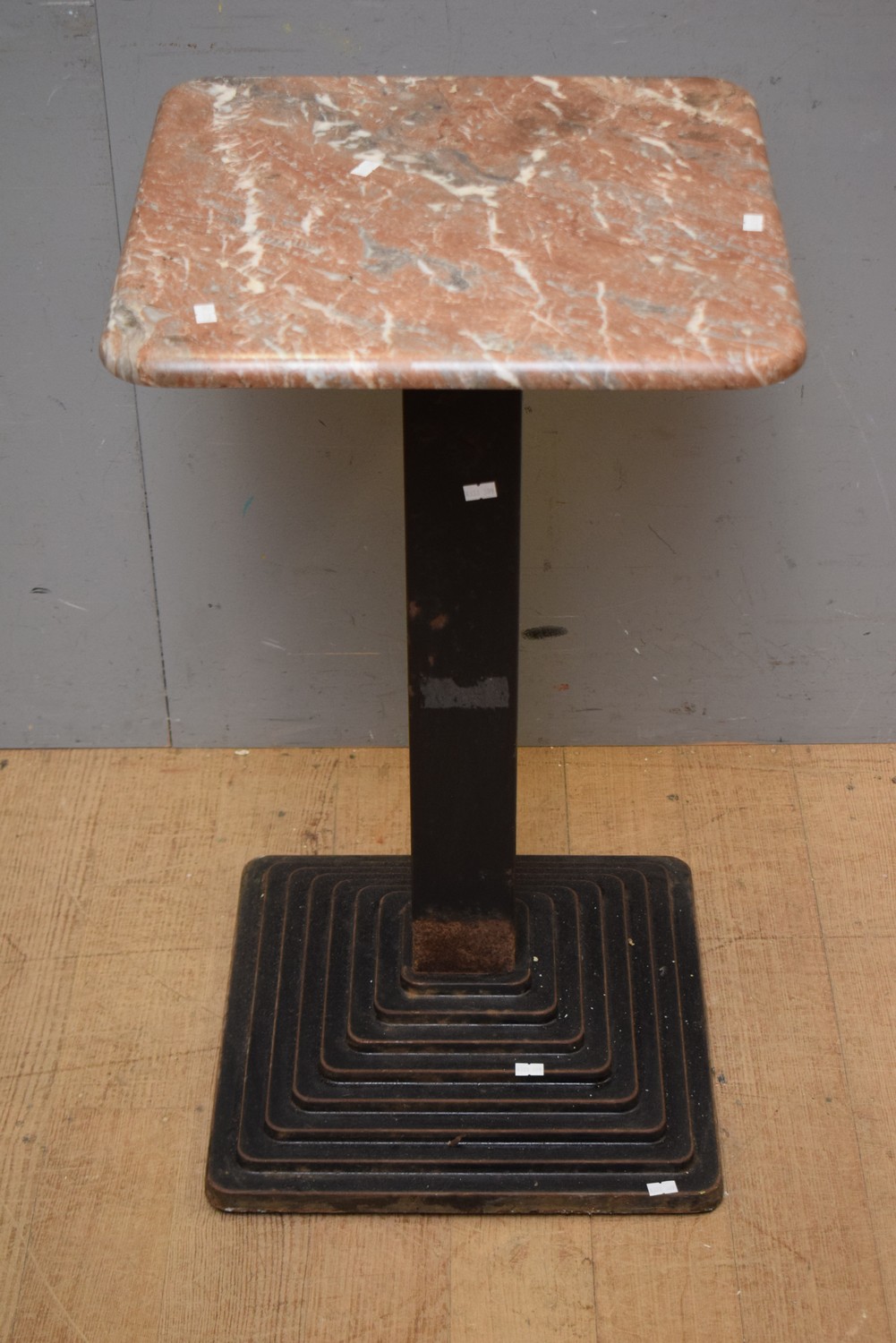A CAST IRON BASE MARBLE TOP TABLE (75H x 43W x 43D CM) (LEONARD JOEL DELIVERY SIZE: LARGE)