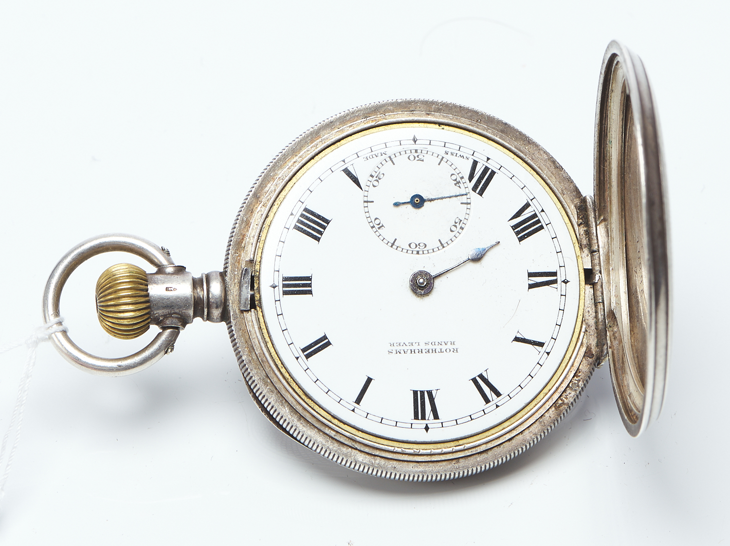 A ROTHERDAMS RANDS LEVER POCKETWATCH (GLASS DEFICIENT) IN ENGINE TURNED SILVER CASE