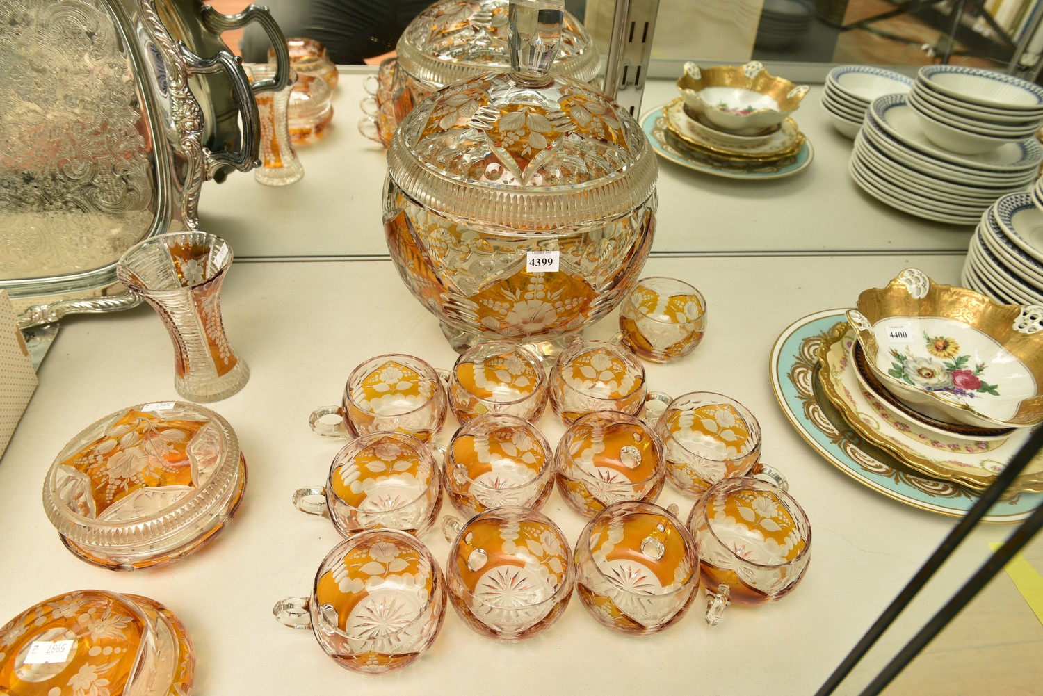 A BOHEMIAN OVERLAID GLASS PUNCH BOWL AND TWELVE CUPS, LEONARD JOEL LOCAL DELIVERY SIZE: SMALL (34 CM H)