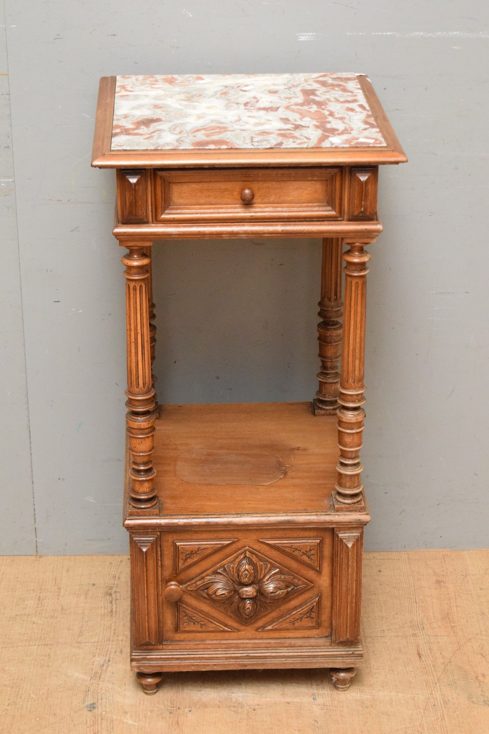 A FRENCH STYLE TWO TIER SINGLE DRAWER BEDSIDE WITH MARBLE TOP (A/F) (H93 X W43 X D43 CM) (LEONARD JOEL DELIVERY SIZE: LARGE)
