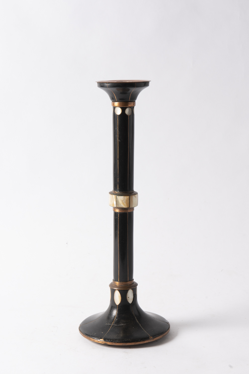 A HANDMADE RESIN AND COPPER CANDLE HOLDER, 39 CM H, LEONARD JOEL LOCAL DELIVERY SIZE: SMALL