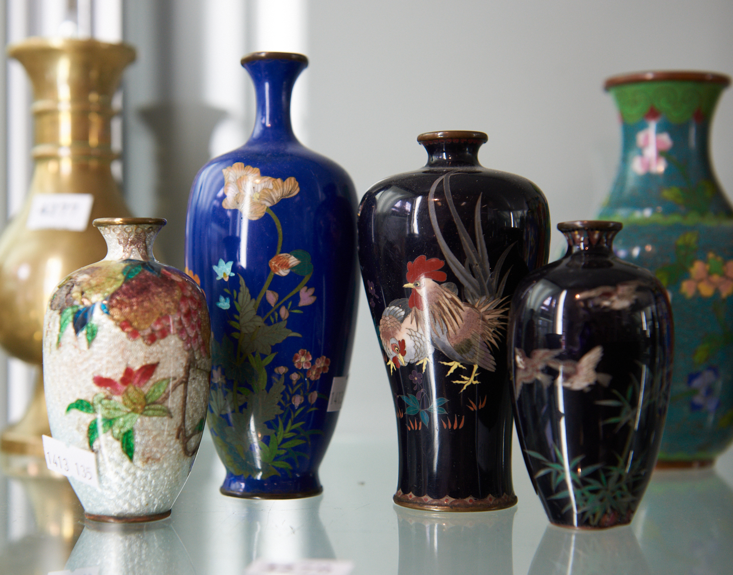 FOUR JAPANESE CLOISONNE VASES, MEIJI PERIOD, LEONARD JOEL LOCAL DELIVERY SIZE: SMALL