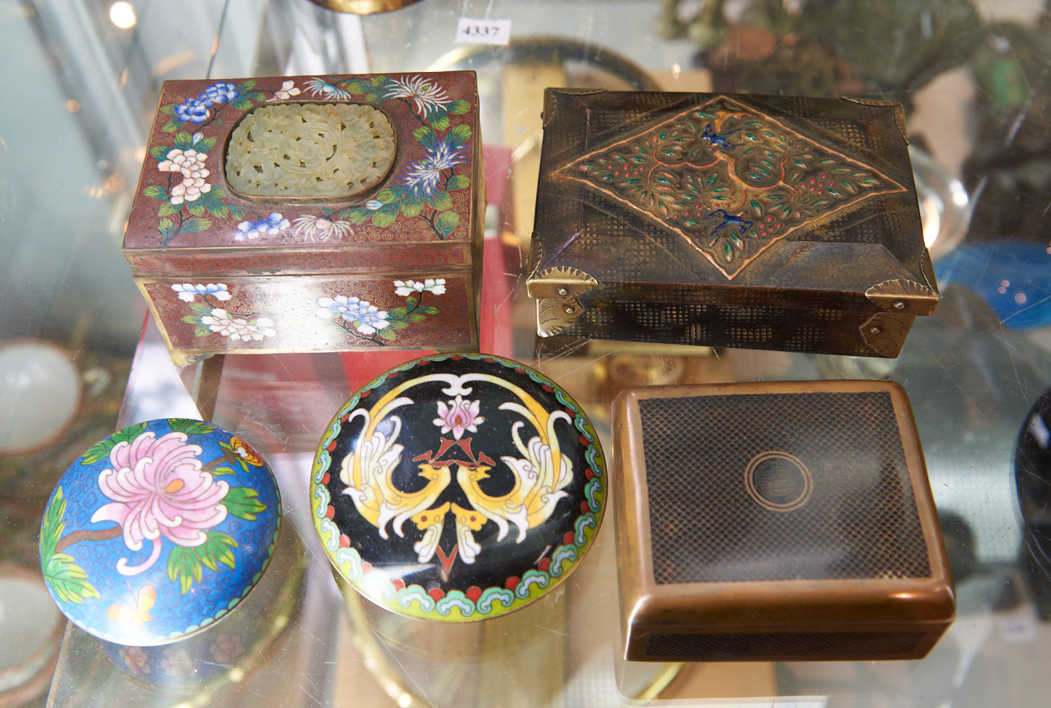FIVE BOXES INCL. CLOISONNE AND STONE INSET, LEONARD JOEL LOCAL DELIVERY SIZE: SMALL
