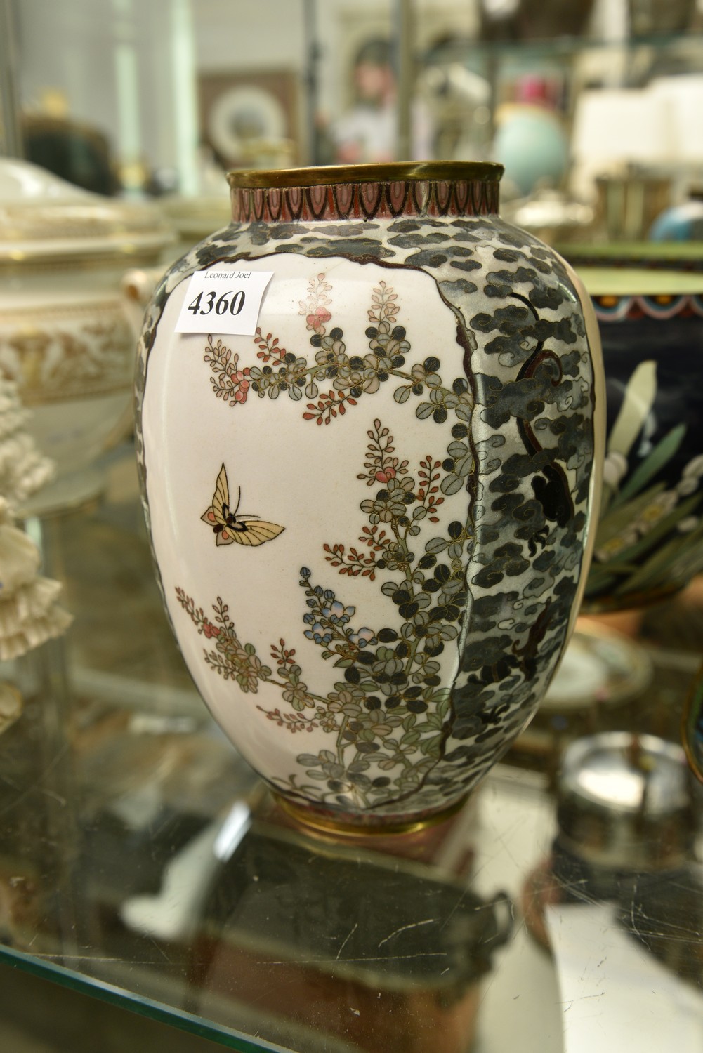 A JAPANESE CLOISONNE VASE WITH BIRD MOTIF, MEIJI PERIOD, LEONARD JOEL LOCAL DELIVERY SIZE: SMALL (20 CM H)
