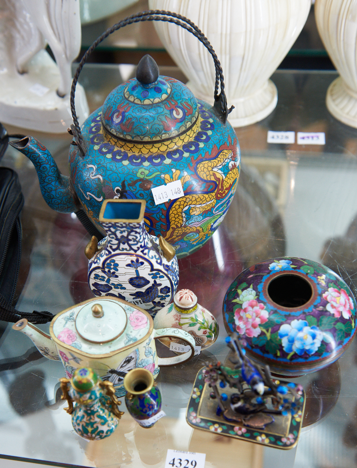 A COLLECTION OF CLOISONNE INCL. TEAPOTS, LEONARD JOEL LOCAL DELIVERY SIZE: SMALL