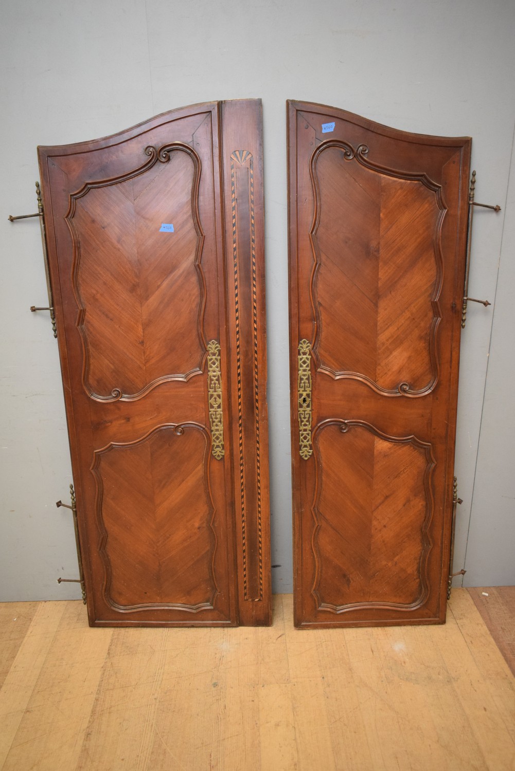PAIR OF 18TH CENTURY FRENCH PROVINCIAL WALNUT DECORATIVE DOORS (A/F) (H183 X W59 CM, H183 X W70 CM) (LEONARD JOEL DELIVERY SIZE: LARGE)