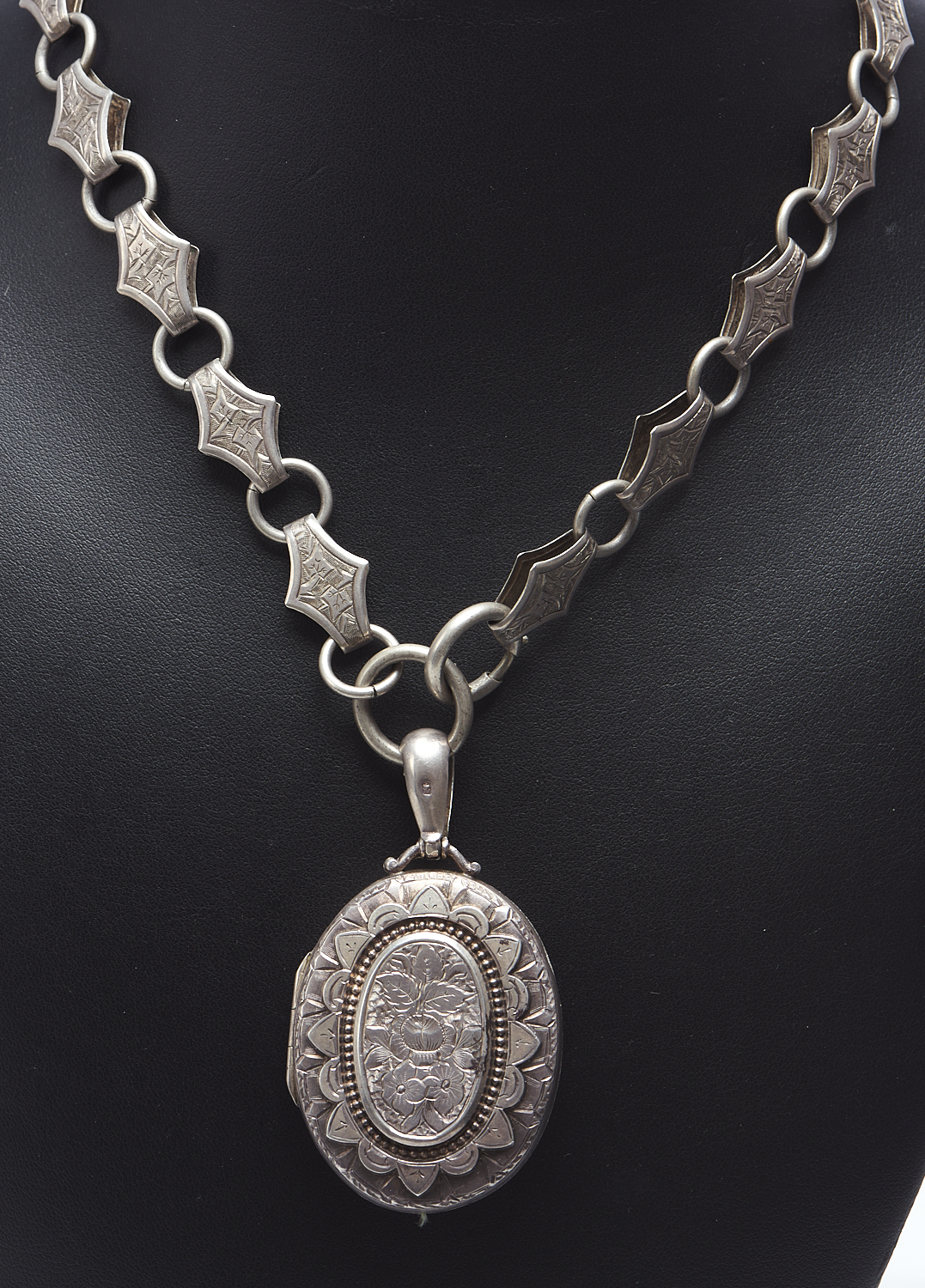 AN ANTIQUE LOCKET AND COLLAR IN STERLING SILVER, HALLMARKED BIRMINGHAM, LENGTH 270MM