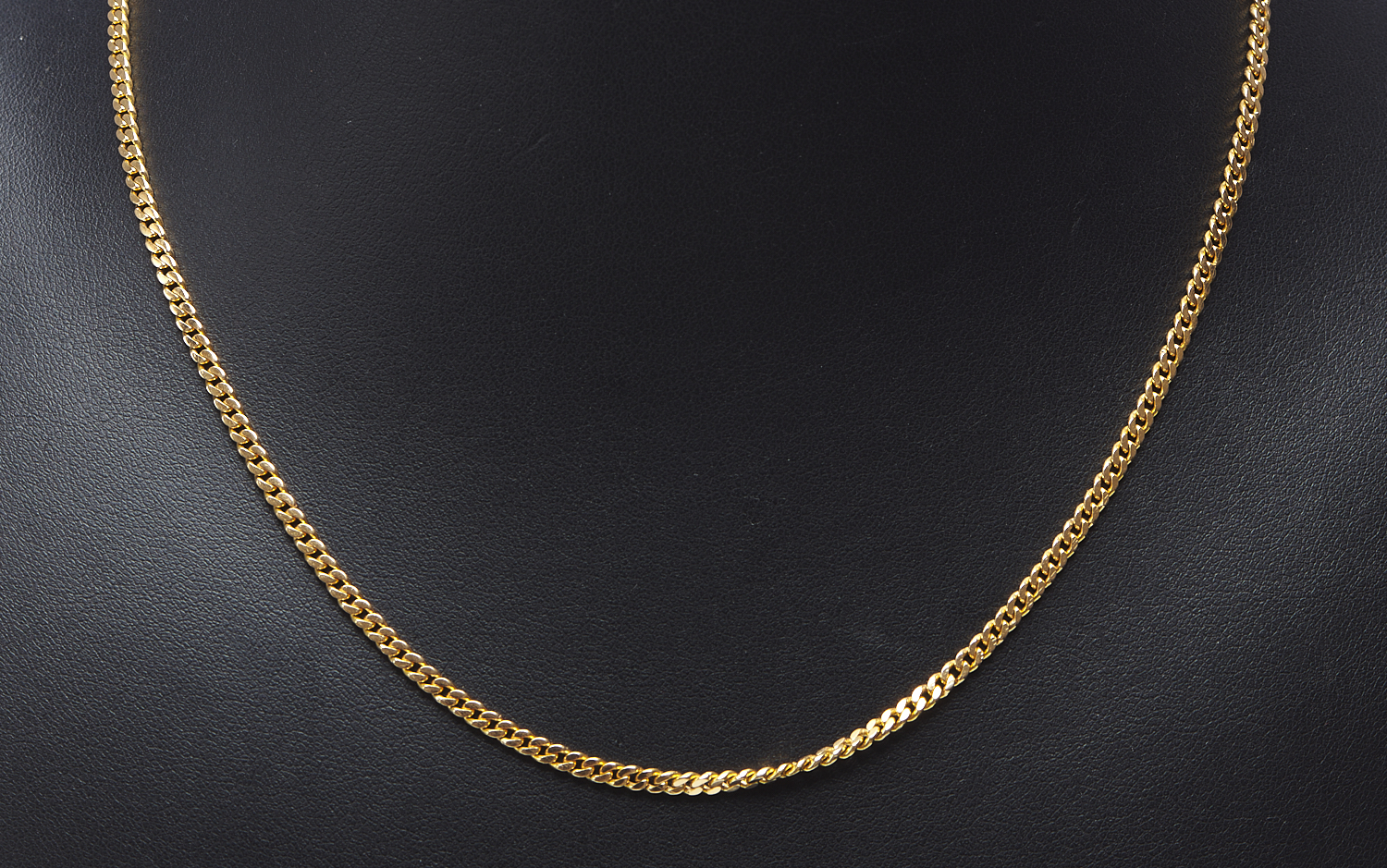 A FLAT CURBLINK CHAIN IN 18CT GOLD, 12.26GMS