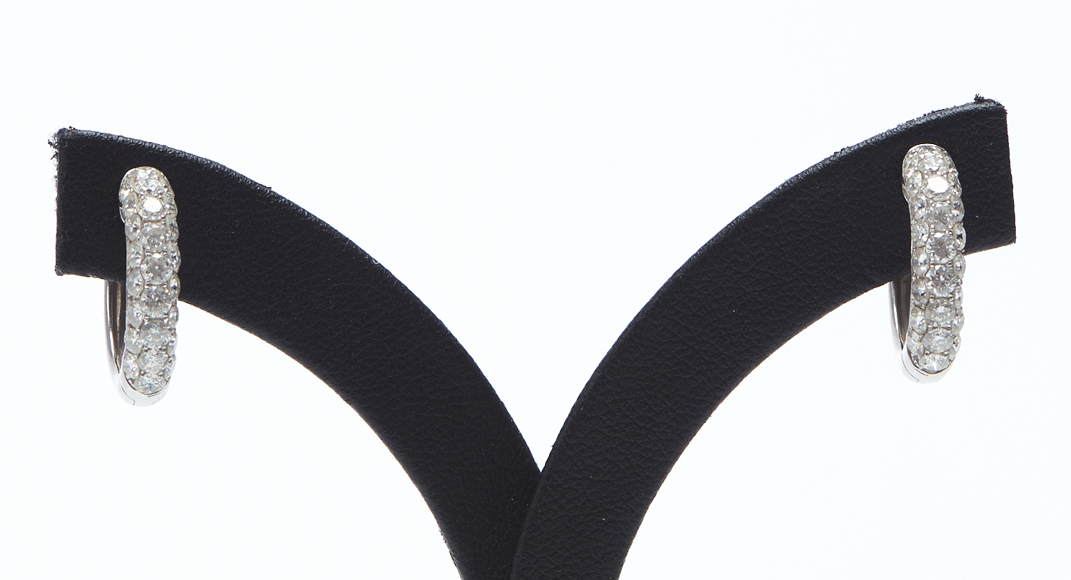 A PAIR OF PAVÉ SET DIAMOND HOOP EARRINGS IN 18CT WHITE GOLD, EACH EARRING ESTIMATED 1.25CTS, 5.6GMS