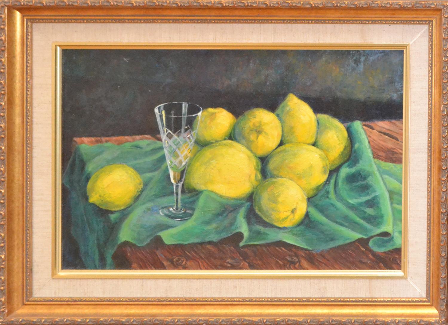 ARTIST UNKNOWN, STILL LIFE OF LEMONS, OIL ON BOARD, 35 X 52CM, LEONARD JOEL DELIVERY SIZE: MEDIUM