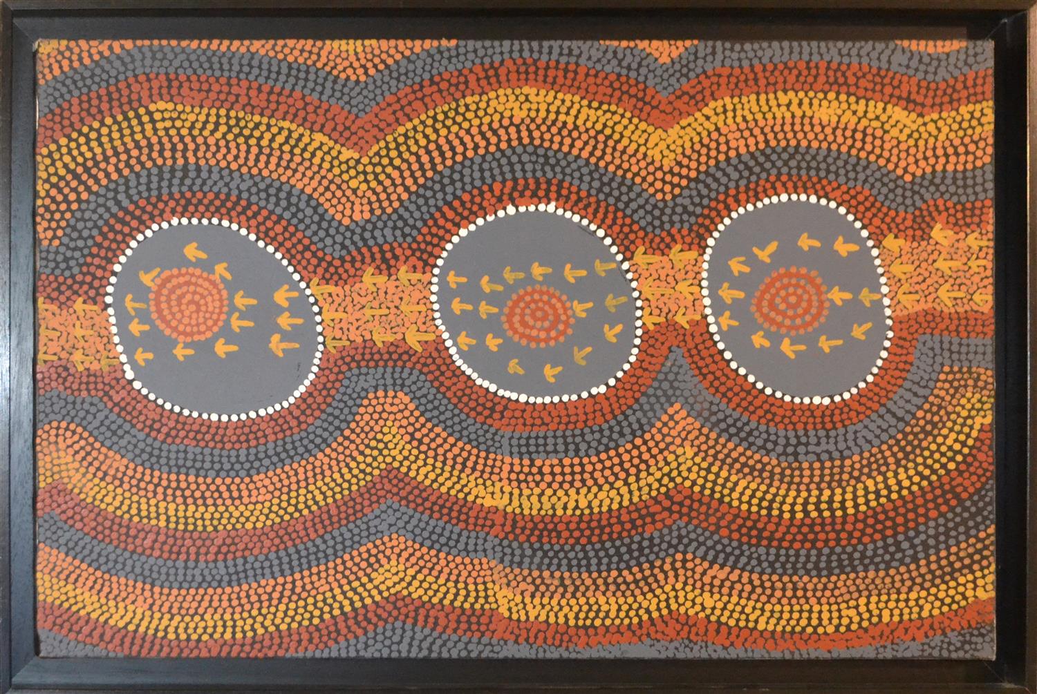 CHARLIE EGALIE TJAPALTJARRI, BUDGERIGAR DREAMING, ACRYLIC ON CANVAS, 55.5 X 81CM, LEONARD JOEL DELIVERY SIZE: MEDIUM