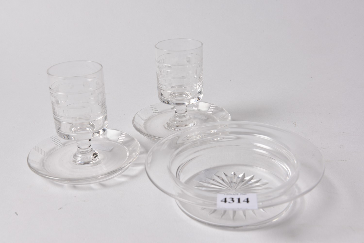 TWO STUART CRYSTAL TOOTHPICK HOLDERS TOGETHER WITH BOTTLE HOLDER, (13 CM D), LEONARD JOEL LOCAL DELIVERY SIZE: SMALL